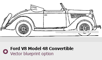 Raster blueprint of the 1938 Ford V8 Model 48 Convertible Coupe Coupe. This free downloadable image can be used for graphic projects, digital design, and 3D modeling. The file provides accurate exterior proportions of the vehicle. Model year: 1938. Body type: Coupe.