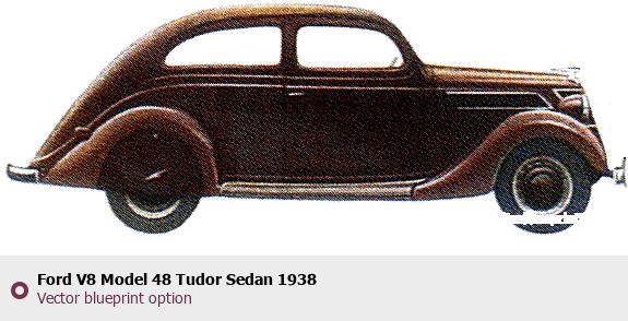 Raster blueprint of the 1938 Ford V8 Model 48 Tudor Sedan Coupe. This free downloadable image can be used for graphic projects, digital design, and 3D modeling. The file provides accurate exterior proportions of the vehicle. Model year: 1938. Body type: Coupe.