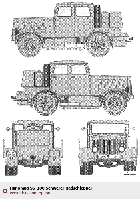 Raster blueprint of the Hanomag SS-100 Schwerer Radschlepper Tag. This free downloadable image can be used for graphic projects, digital design, and 3D modeling. The file provides accurate exterior proportions of the vehicle. Body type: Tag.