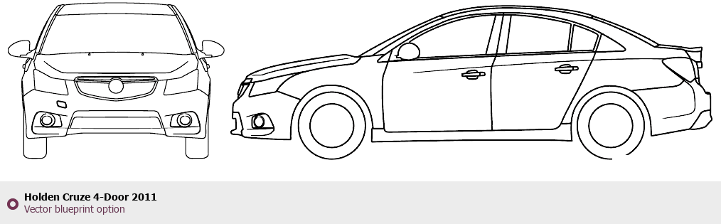 Raster blueprint of the 2011 Holden Cruze 4-Door Tag. This free downloadable image can be used for graphic projects, digital design, and 3D modeling. The file provides accurate exterior proportions of the vehicle. Model year: 2011. Body type: Tag.