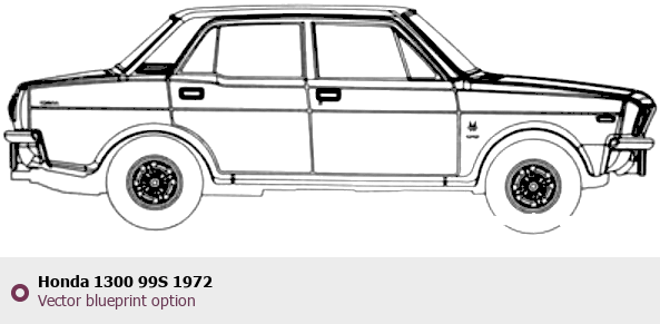 Raster blueprint of the 1972 Honda 1300 99S Tag. This free downloadable image can be used for graphic projects, digital design, and 3D modeling. The file provides accurate exterior proportions of the vehicle. Model year: 1972. Body type: Tag.