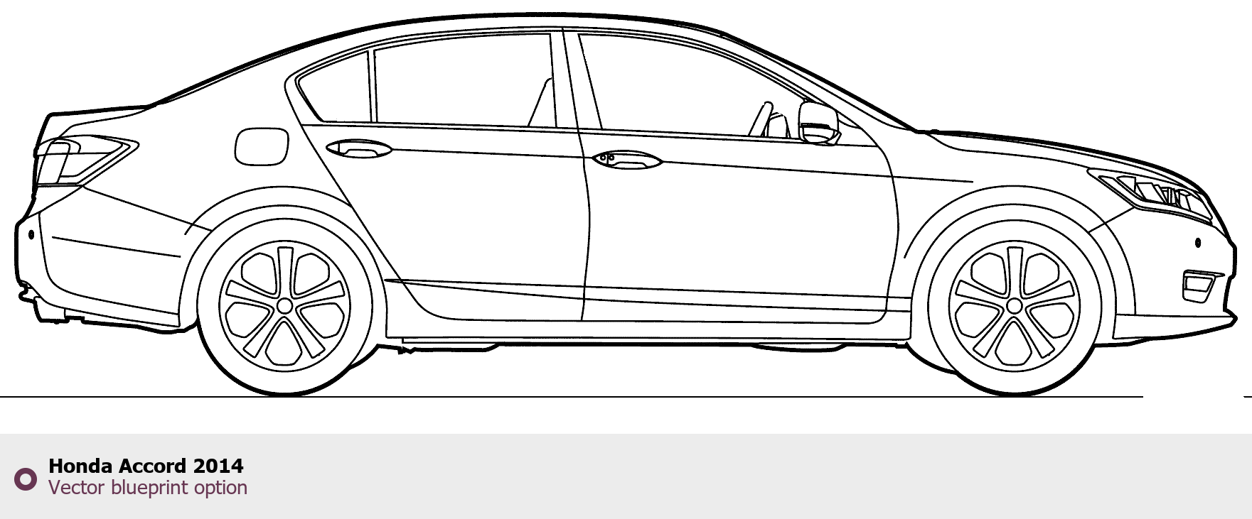 Raster blueprint of the 2014 Honda Accord Tag. This free downloadable image can be used for graphic projects, digital design, and 3D modeling. The file provides accurate exterior proportions of the vehicle. Model year: 2014. Body type: Tag.