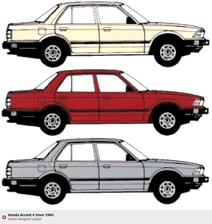 Raster blueprint of the 1982 Honda Accord 4-Door Tag. This free downloadable image can be used for graphic projects, digital design, and 3D modeling. The file provides accurate exterior proportions of the vehicle. Model year: 1982. Body type: Tag.