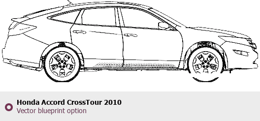 Raster blueprint of the 2010 Honda Accord CrossTour Tag. This free downloadable image can be used for graphic projects, digital design, and 3D modeling. The file provides accurate exterior proportions of the vehicle. Model year: 2010. Body type: Tag.