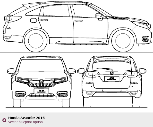 Raster blueprint of the 2016 Honda Avancier Tag. This free downloadable image can be used for graphic projects, digital design, and 3D modeling. The file provides accurate exterior proportions of the vehicle. Model year: 2016. Body type: Tag.