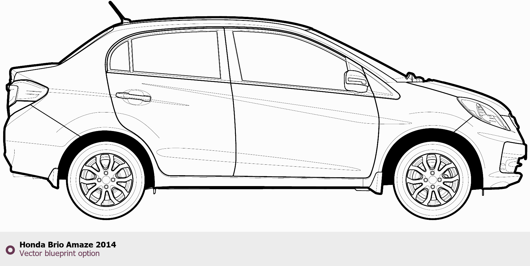 Raster blueprint of the 2014 Honda Brio Amaze Hatchback. This free downloadable image can be used for graphic projects, digital design, and 3D modeling. The file provides accurate exterior proportions of the vehicle. Model year: 2014. Body type: Hatchback.