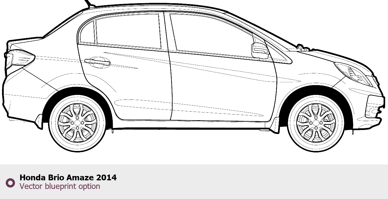 Raster blueprint of the 2014 Honda Brio Amaze Hatchback. This free downloadable image can be used for graphic projects, digital design, and 3D modeling. The file provides accurate exterior proportions of the vehicle. Model year: 2014. Body type: Hatchback.