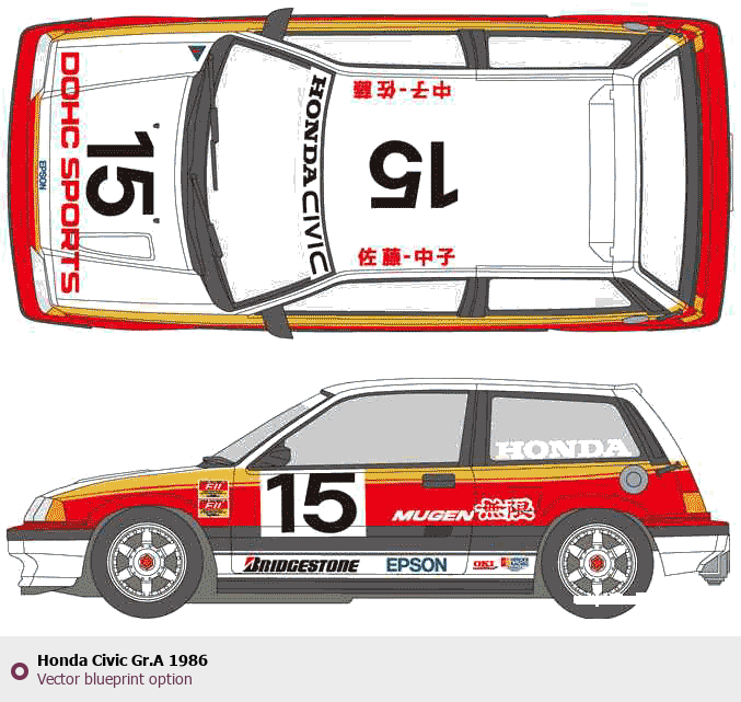 Raster blueprint of the 1986 Honda Civic Gr.A Tag. This free downloadable image can be used for graphic projects, digital design, and 3D modeling. The file provides accurate exterior proportions of the vehicle. Model year: 1986. Body type: Tag.