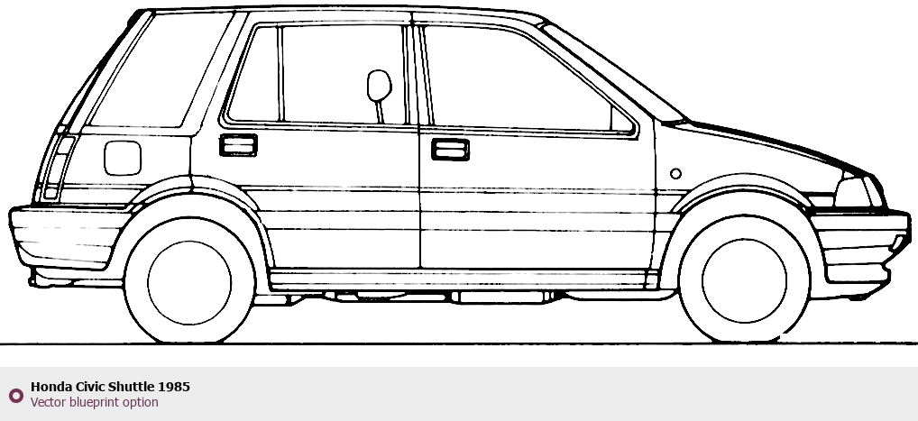 Raster blueprint of the 1985 Honda Civic Shuttle Tag. This free downloadable image can be used for graphic projects, digital design, and 3D modeling. The file provides accurate exterior proportions of the vehicle. Model year: 1985. Body type: Tag.