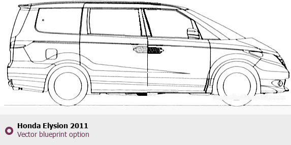 Raster blueprint of the 2011 Honda Elysion Sedan. This free downloadable image can be used for graphic projects, digital design, and 3D modeling. The file provides accurate exterior proportions of the vehicle. Model year: 2011. Body type: Sedan.