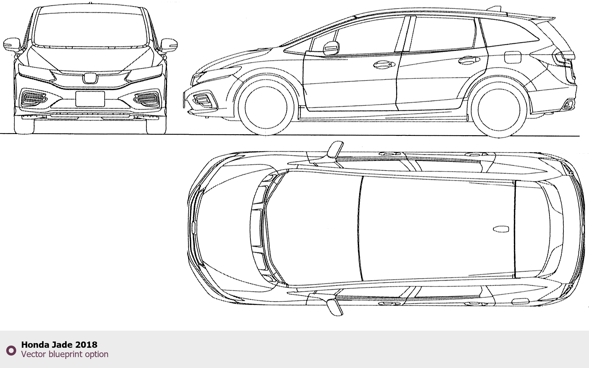 Raster blueprint of the 2018 Honda Jade Hatchback. This free downloadable image can be used for graphic projects, digital design, and 3D modeling. The file provides accurate exterior proportions of the vehicle. Model year: 2018. Body type: Hatchback.