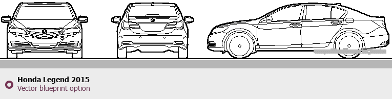 Raster blueprint of the 2015 Honda Legend Sedan. This free downloadable image can be used for graphic projects, digital design, and 3D modeling. The file provides accurate exterior proportions of the vehicle. Model year: 2015. Body type: Sedan.