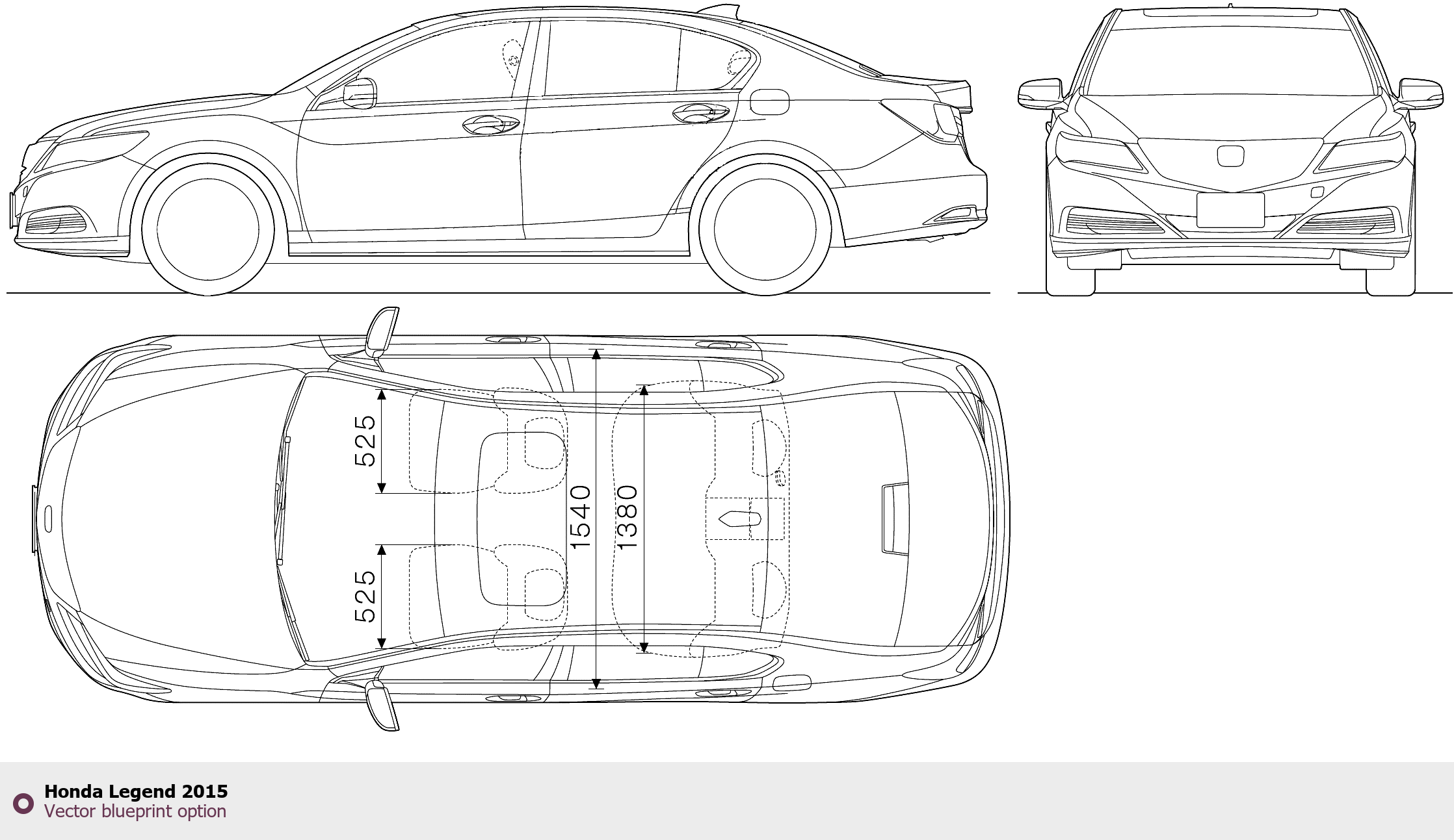 Raster blueprint of the 2015 Honda Legend Sedan. This free downloadable image can be used for graphic projects, digital design, and 3D modeling. The file provides accurate exterior proportions of the vehicle. Model year: 2015. Body type: Sedan.