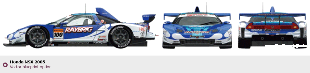 Raster blueprint of the 2005 Honda NSX Coupe. This free downloadable image can be used for graphic projects, digital design, and 3D modeling. The file provides accurate exterior proportions of the vehicle. Model year: 2005. Body type: Coupe.