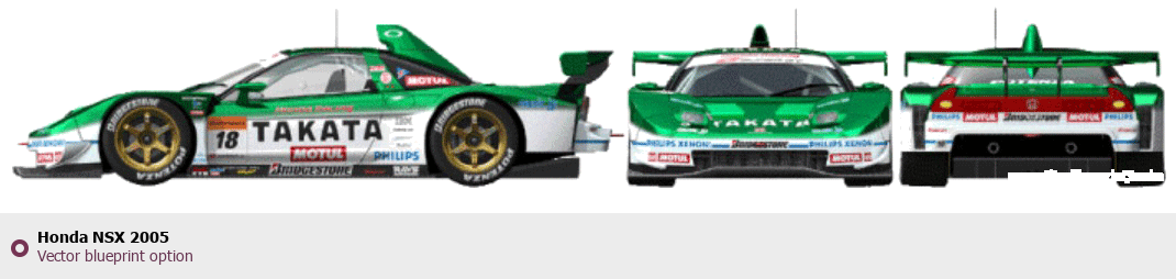 Raster blueprint of the 2005 Honda NSX Coupe. This free downloadable image can be used for graphic projects, digital design, and 3D modeling. The file provides accurate exterior proportions of the vehicle. Model year: 2005. Body type: Coupe.