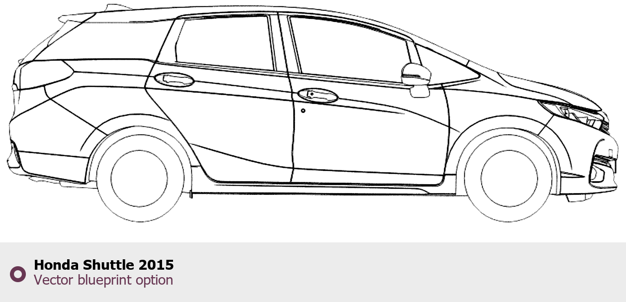 Raster blueprint of the 2015 Honda Shuttle Tag. This free downloadable image can be used for graphic projects, digital design, and 3D modeling. The file provides accurate exterior proportions of the vehicle. Model year: 2015. Body type: Tag.