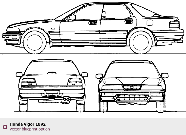 Raster blueprint of the 1992 Honda Vigor Tag. This free downloadable image can be used for graphic projects, digital design, and 3D modeling. The file provides accurate exterior proportions of the vehicle. Model year: 1992. Body type: Tag.