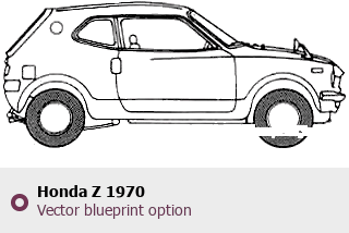 Raster blueprint of the 1970 Honda Z SUV. This free downloadable image can be used for graphic projects, digital design, and 3D modeling. The file provides accurate exterior proportions of the vehicle. Model year: 1970. Body type: SUV.