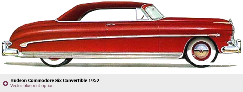 Raster blueprint of the 1952 Hudson Commodore Six Convertible Cabriolet. This free downloadable image can be used for graphic projects, digital design, and 3D modeling. The file provides accurate exterior proportions of the vehicle. Model year: 1952. Body type: Cabriolet.