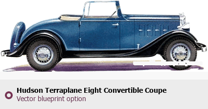Raster blueprint of the 1933 Hudson Terraplane Eight Convertible Coupe Coupe. This free downloadable image can be used for graphic projects, digital design, and 3D modeling. The file provides accurate exterior proportions of the vehicle. Model year: 1933. Body type: Coupe.