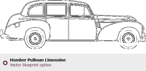 Raster blueprint of the Humber Pullman Limousine Limousine. This free downloadable image can be used for graphic projects, digital design, and 3D modeling. The file provides accurate exterior proportions of the vehicle. Body type: Limousine.