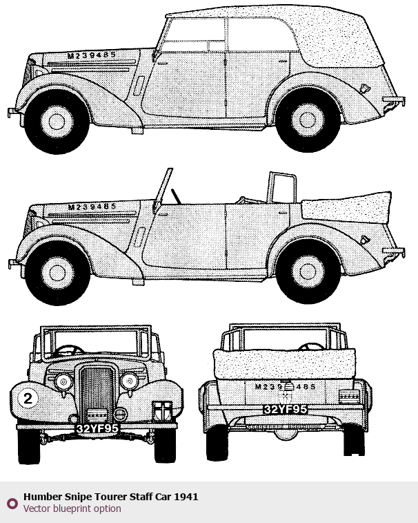 Raster blueprint of the 1941 Humber Snipe Tourer Staff Car Tag. This free downloadable image can be used for graphic projects, digital design, and 3D modeling. The file provides accurate exterior proportions of the vehicle. Model year: 1941. Body type: Tag.