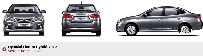 Raster blueprint of the 2012 Hyundai Elantra Hybrid Tag. This free downloadable image can be used for graphic projects, digital design, and 3D modeling. The file provides accurate exterior proportions of the vehicle. Model year: 2012. Body type: Tag.