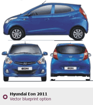 Raster blueprint of the 2011 Hyundai Eon Tag. This free downloadable image can be used for graphic projects, digital design, and 3D modeling. The file provides accurate exterior proportions of the vehicle. Model year: 2011. Body type: Tag.