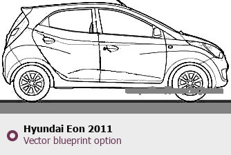 Raster blueprint of the 2011 Hyundai Eon Tag. This free downloadable image can be used for graphic projects, digital design, and 3D modeling. The file provides accurate exterior proportions of the vehicle. Model year: 2011. Body type: Tag.