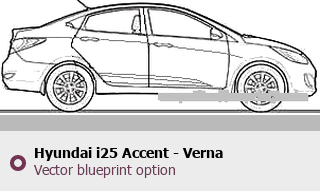 Raster blueprint of the 2011 Hyundai i25 Accent - Verna Sedan. This free downloadable image can be used for graphic projects, digital design, and 3D modeling. The file provides accurate exterior proportions of the vehicle. Model year: 2011. Body type: Sedan.
