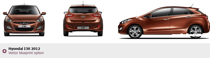 Raster blueprint of the 2012 Hyundai I30 Tag. This free downloadable image can be used for graphic projects, digital design, and 3D modeling. The file provides accurate exterior proportions of the vehicle. Model year: 2012. Body type: Tag.