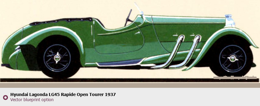 Raster blueprint of the 1937 Hyundai Lagonda LG45 Rapide Open Tourer Tag. This free downloadable image can be used for graphic projects, digital design, and 3D modeling. The file provides accurate exterior proportions of the vehicle. Model year: 1937. Body type: Tag.