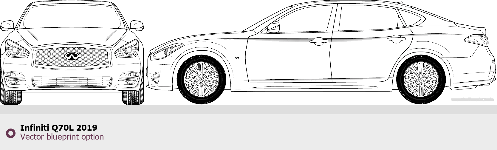 Raster blueprint of the 2019 Infiniti Q70L Sedan. This free downloadable image can be used for graphic projects, digital design, and 3D modeling. The file provides accurate exterior proportions of the vehicle. Model year: 2019. Body type: Sedan.