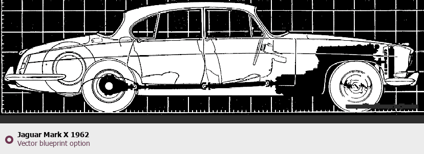 Raster blueprint of the 1962 Jaguar Mark X Tag. This free downloadable image can be used for graphic projects, digital design, and 3D modeling. The file provides accurate exterior proportions of the vehicle. Model year: 1962. Body type: Tag.