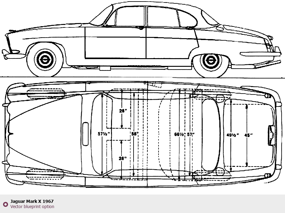 Raster blueprint of the 1967 Jaguar Mark X Tag. This free downloadable image can be used for graphic projects, digital design, and 3D modeling. The file provides accurate exterior proportions of the vehicle. Model year: 1967. Body type: Tag.