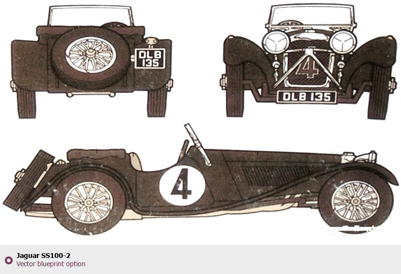 Raster blueprint of the Jaguar SS100-2 Tag. This free downloadable image can be used for graphic projects, digital design, and 3D modeling. The file provides accurate exterior proportions of the vehicle. Body type: Tag.