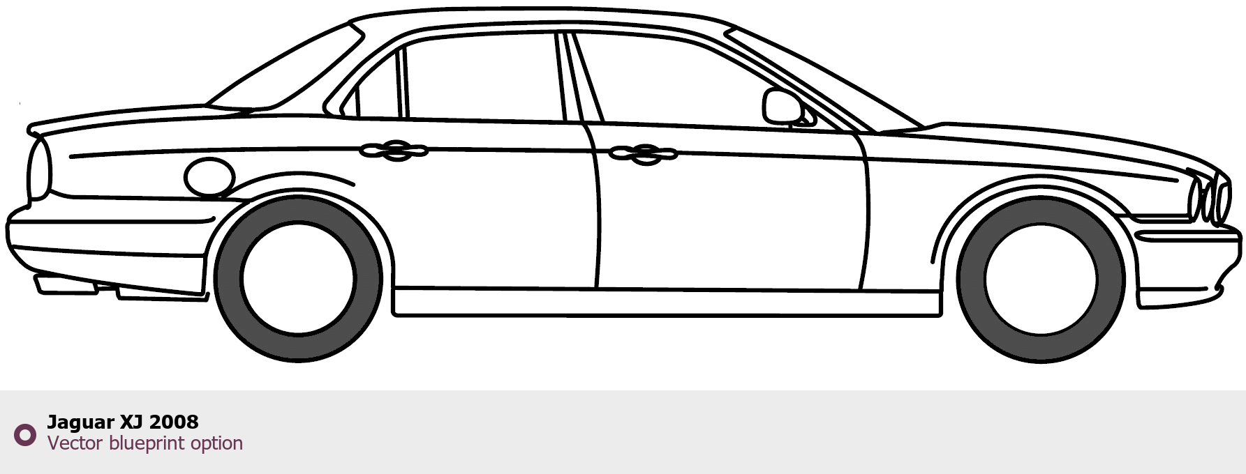 Raster blueprint of the 2008 Jaguar XJ Sedan. This free downloadable image can be used for graphic projects, digital design, and 3D modeling. The file provides accurate exterior proportions of the vehicle. Model year: 2008. Body type: Sedan.