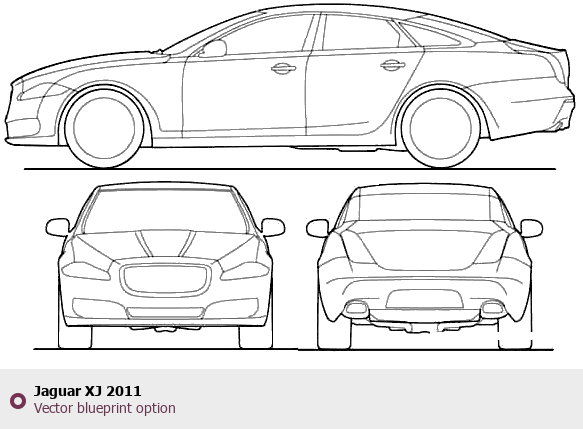 Raster blueprint of the 2011 Jaguar XJ Sedan. This free downloadable image can be used for graphic projects, digital design, and 3D modeling. The file provides accurate exterior proportions of the vehicle. Model year: 2011. Body type: Sedan.