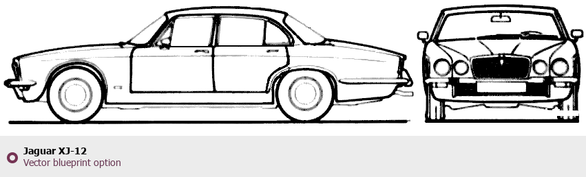 Raster blueprint of the Jaguar XJ-12 Sedan. This free downloadable image can be used for graphic projects, digital design, and 3D modeling. The file provides accurate exterior proportions of the vehicle. Body type: Sedan.
