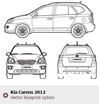 Raster blueprint of the 2012 KIA Carens Tag. This free downloadable image can be used for graphic projects, digital design, and 3D modeling. The file provides accurate exterior proportions of the vehicle. Model year: 2012. Body type: Tag.