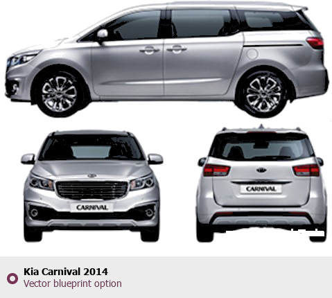 Raster blueprint of the 2014 KIA Carnival Tag. This free downloadable image can be used for graphic projects, digital design, and 3D modeling. The file provides accurate exterior proportions of the vehicle. Model year: 2014. Body type: Tag.