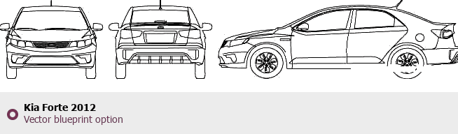 Raster blueprint of the 2012 KIA Forte Tag. This free downloadable image can be used for graphic projects, digital design, and 3D modeling. The file provides accurate exterior proportions of the vehicle. Model year: 2012. Body type: Tag.