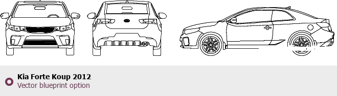 Raster blueprint of the 2012 KIA Forte Koup Tag. This free downloadable image can be used for graphic projects, digital design, and 3D modeling. The file provides accurate exterior proportions of the vehicle. Model year: 2012. Body type: Tag.
