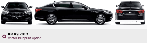 Raster blueprint of the 2012 KIA K9 Tag. This free downloadable image can be used for graphic projects, digital design, and 3D modeling. The file provides accurate exterior proportions of the vehicle. Model year: 2012. Body type: Tag.