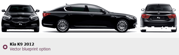 Raster blueprint of the 2012 KIA K9 Tag. This free downloadable image can be used for graphic projects, digital design, and 3D modeling. The file provides accurate exterior proportions of the vehicle. Model year: 2012. Body type: Tag.