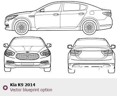 Raster blueprint of the 2014 KIA K9 Tag. This free downloadable image can be used for graphic projects, digital design, and 3D modeling. The file provides accurate exterior proportions of the vehicle. Model year: 2014. Body type: Tag.