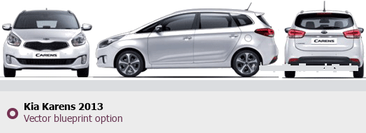 Raster blueprint of the 2013 KIA Karens Tag. This free downloadable image can be used for graphic projects, digital design, and 3D modeling. The file provides accurate exterior proportions of the vehicle. Model year: 2013. Body type: Tag.