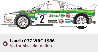 Raster blueprint of the 1986 Lancia 037 WRC Tag. This free downloadable image can be used for graphic projects, digital design, and 3D modeling. The file provides accurate exterior proportions of the vehicle. Model year: 1986. Body type: Tag.