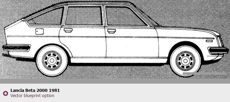 Raster blueprint of the 1981 Lancia Beta 2000 Tag. This free downloadable image can be used for graphic projects, digital design, and 3D modeling. The file provides accurate exterior proportions of the vehicle. Model year: 1981. Body type: Tag.