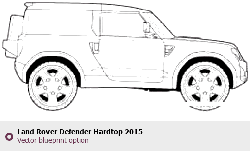 Raster blueprint of the 2015 Land Rover Defender Hardtop SUV. This free downloadable image can be used for graphic projects, digital design, and 3D modeling. The file provides accurate exterior proportions of the vehicle. Model year: 2015. Body type: SUV.